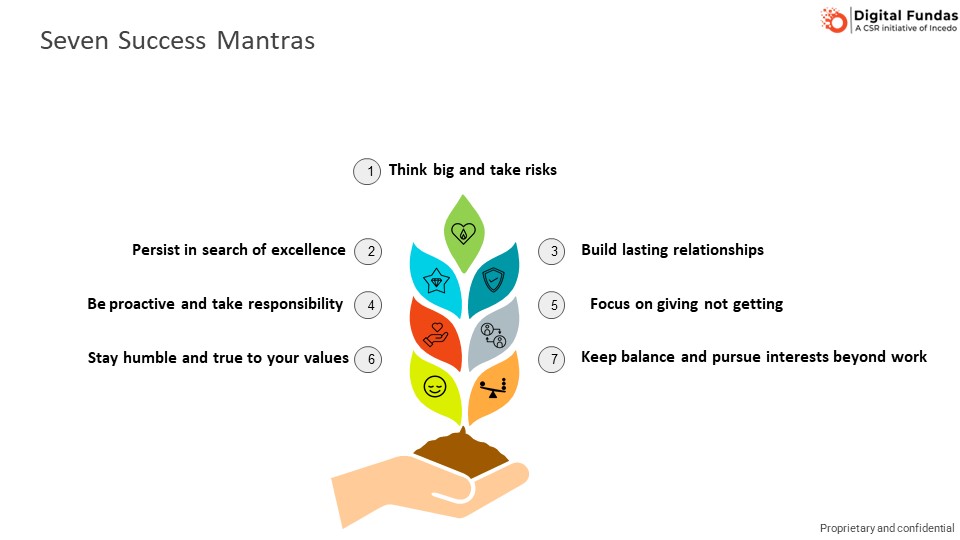Nitin’s insight: My experience is that the downside of taking risks is often less harmful than what you fear and the upside a lot more rewarding than you imagine. Even if you fail, it will not be a catastrophe, and you will probably learn a lot from it. For me, leaving McKinsey early in my career and setting up my venture ActiveKarma was a big risk. The venture failed, but I was able to recover and get going again very quickly. Moreover, I grew tremendously from the experience. I thought I was a ‘hot shot’ consultant before I did the venture, but my lessons in building a business really came from my ActiveKarma experience. Whatever I achieved subsequently at McKinsey Knowledge Centre (McKC), Fidelity, Flipkart and now Incedo, I owe to those lessons. I am convinced that the risk I took with ActiveKarma and the experiences I had in running it have helped me do better as a manager and leader than I might have otherwise.