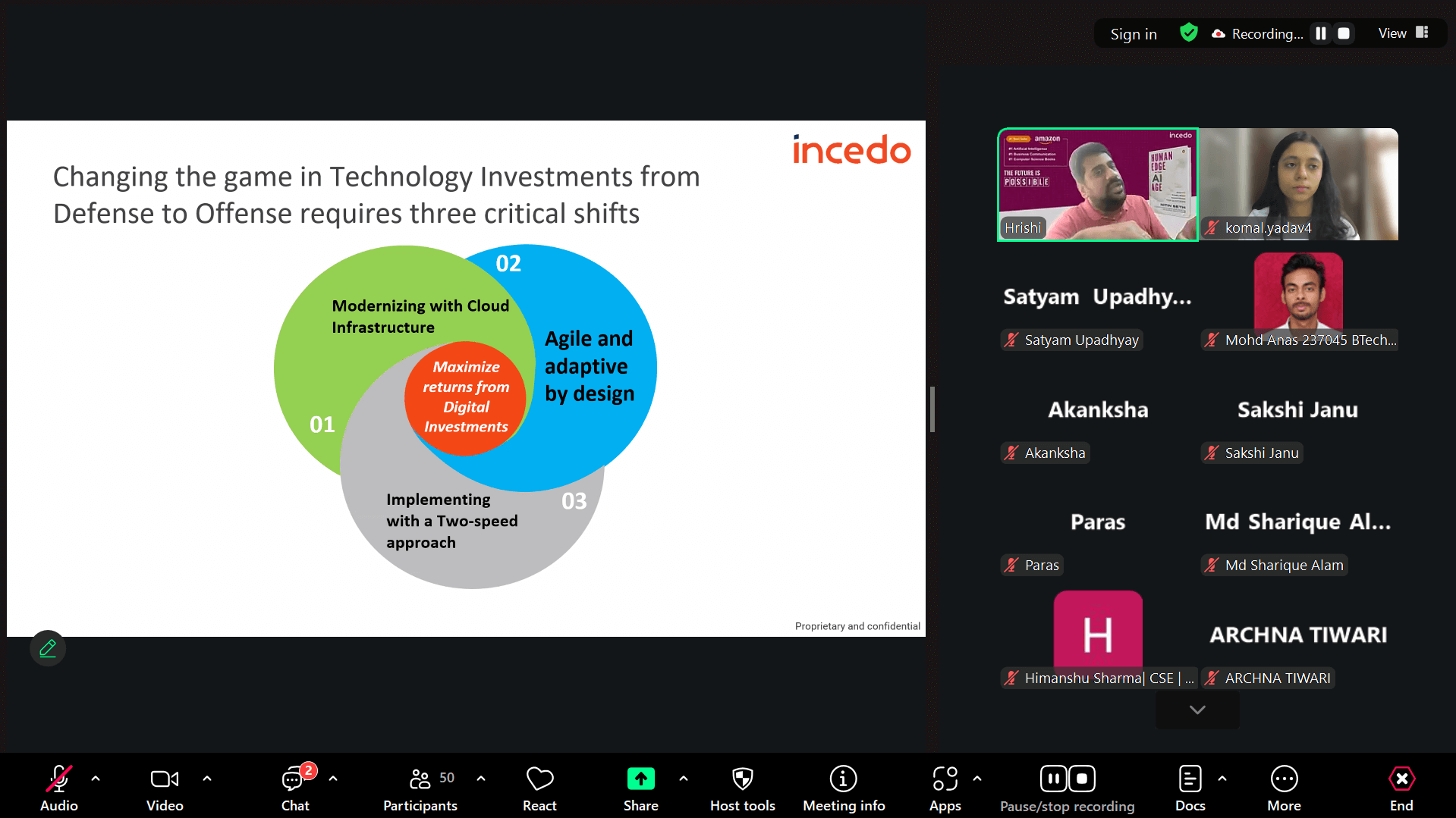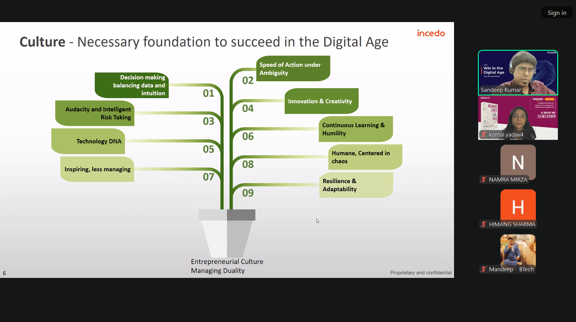 Overall, 100+ students registered for the program, with strong participation observed throughout the engagement. Over 37 students successfully completed the Digital Fundas – Foundation Level certification and are already applying the concepts learned to their academic work, case studies, and problem-solving approaches. The program enabled students to develop a clear understanding of digital transformation fundamentals and the seven core building blocks shaping today’s digital enterprises.